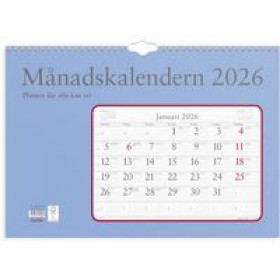 Format: 430x300 mm Layout: Månad/blad Kalendarium: 2026-01-01 - 2026-12-31 Spiralbunden. Innehåll: Kyrkliga helgdagar, Flaggdagar, Helgdagar/aftnar, Månfaser, Namnsdagar, Temadagar/händelser, Årsöversikt/årsöversikter Antal sidor: 12 FSC Mix