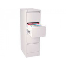 Det här arkivskåpet är lämpligt för arkivering av dokument och kontorsmaterial i hemmet och på kontoret. Skåpet har fyra lådor med ett centrallåssystem och kan lagra officiella dokument på ett organiserat sätt. Det är tillverkat av lackerad stålplåt och låser de övriga lådorna när du öppnar en låda. Dessutom rymmer lådorna enkelt 260 filer och har dessutom tumhål för enkel hämtning