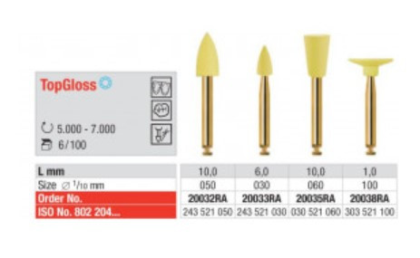 Diamantimpregnerad micropolerare för högglanspolering av komposit och kompomerer.